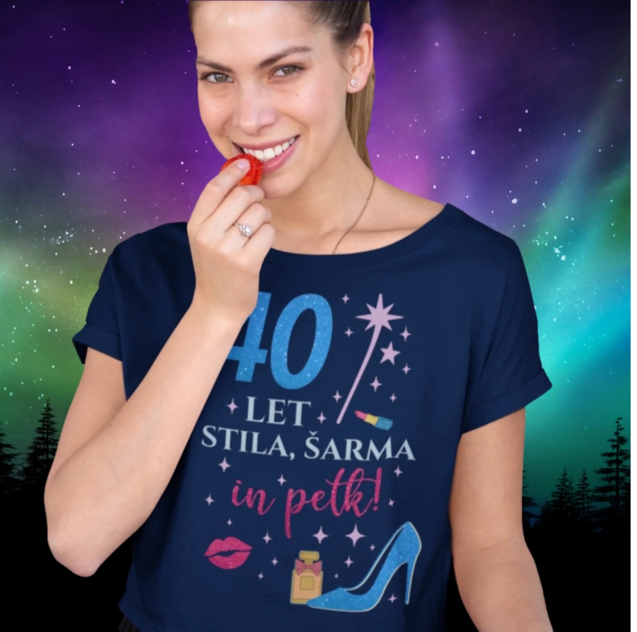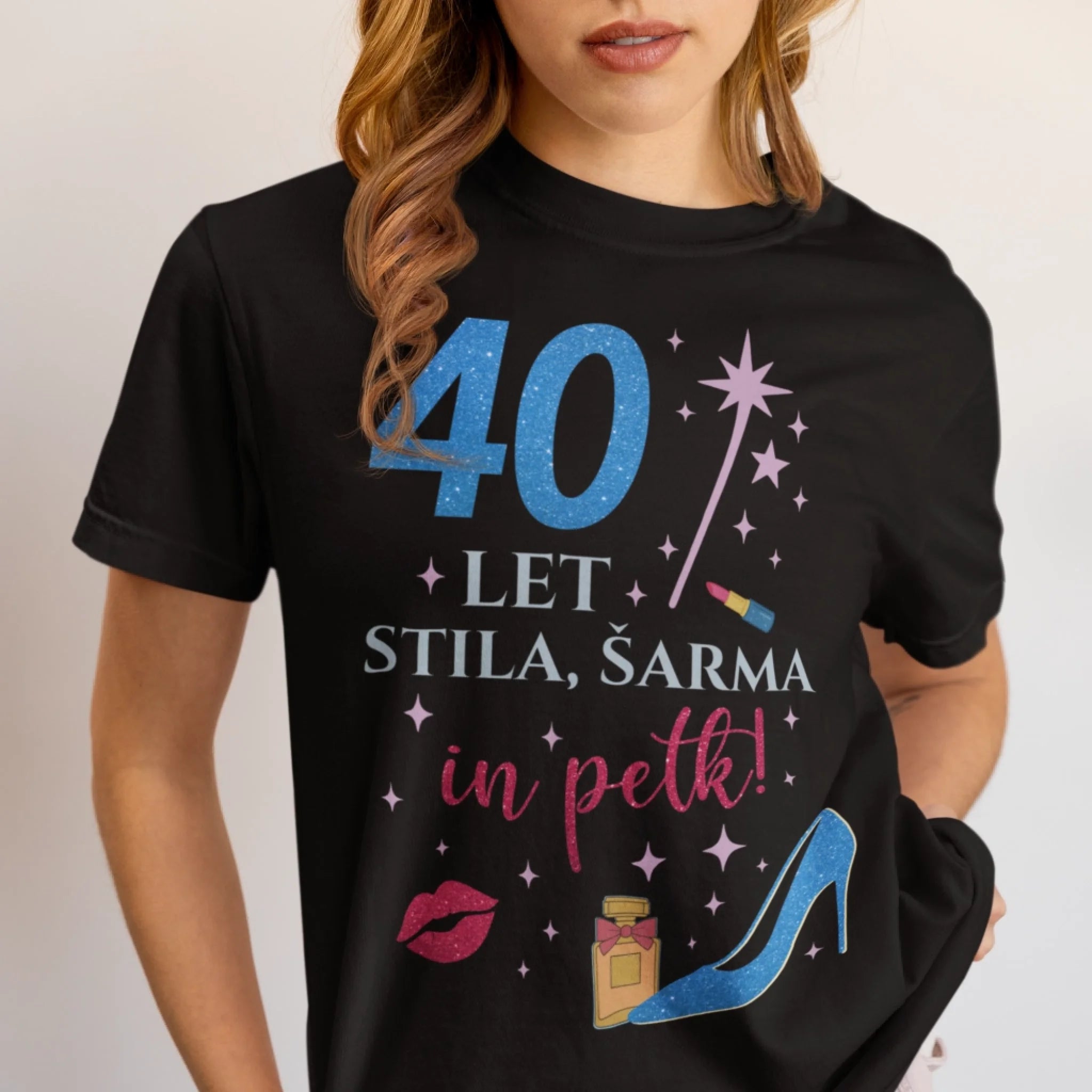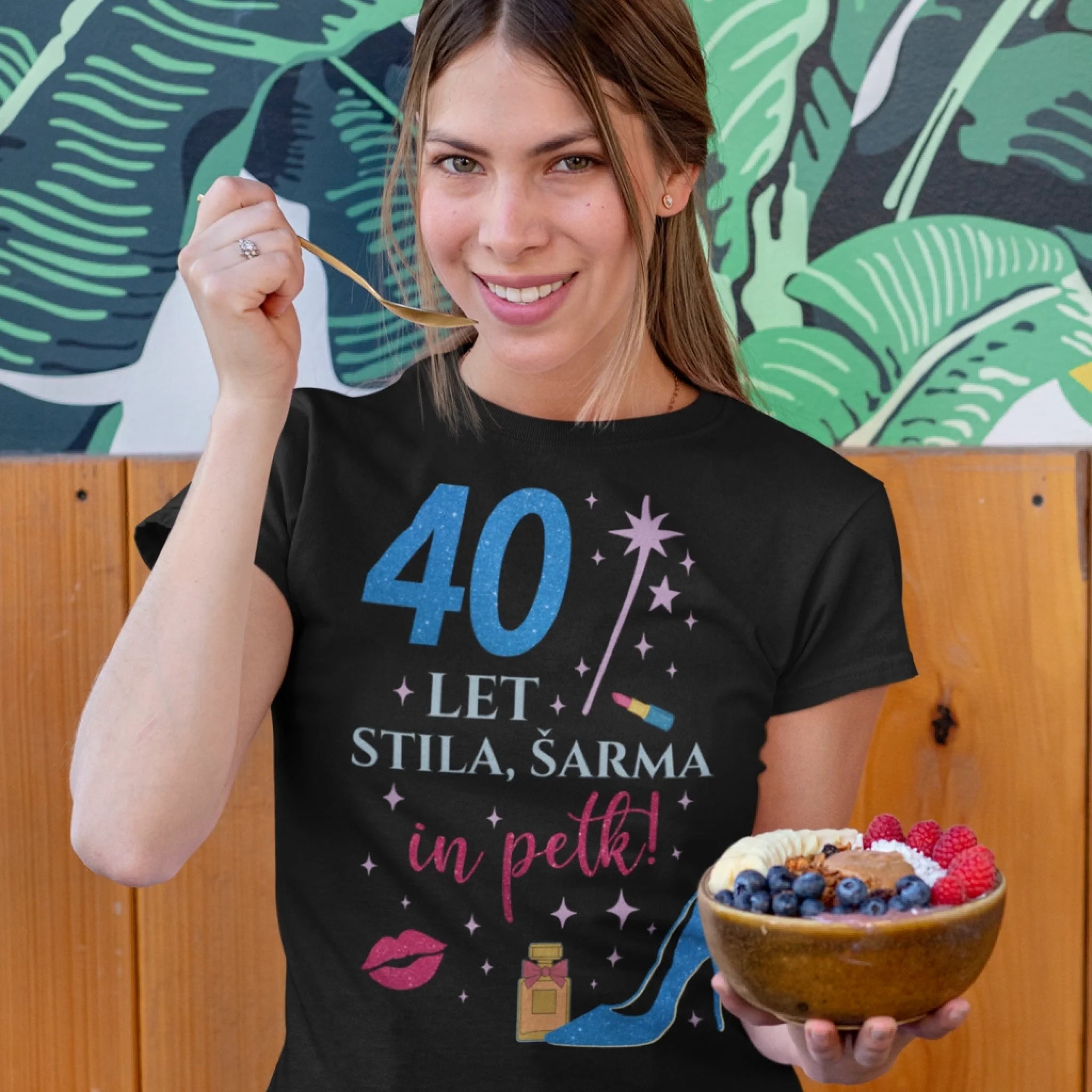 40 let stila, šarma in petk – ženska rojstnodnevna majica
