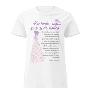 Ko hodiš, pojdi zmeraj do konca – majica z verzom Toneta Pavčka